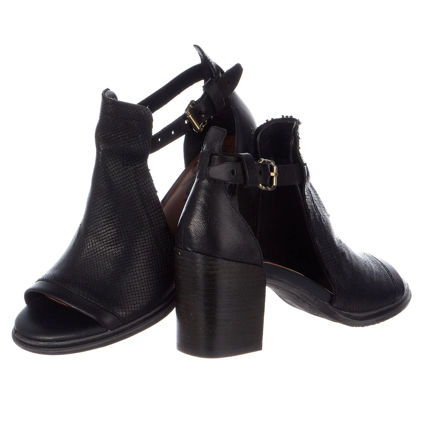 Let your style speak for you. Classic styling is done in this stacked ankle-strap shootie with textured leather, side cut-outs and a sophisticated open toe.